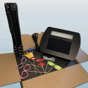 Efter endt arrangement, skal selfieskærmen blot pakkes ned i kassen igen, og sendes retur til os med den medfølgende returlabel.